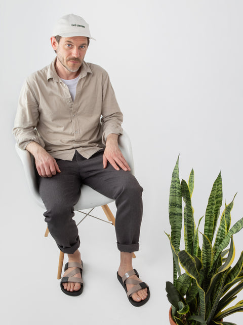 En 2016, lors d'un congé sabbatique, il a parcouru l'Europe en bus VW à la recherche de chaussures ouvertes contemporaines. En vain. Il n'y avait donc qu'une seule option pour lui : créer ses propres sandales viable à l'avenir.